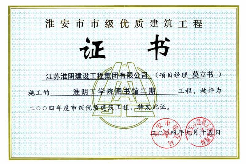 2004年市优淮阴工学院图书馆二期 莫立书