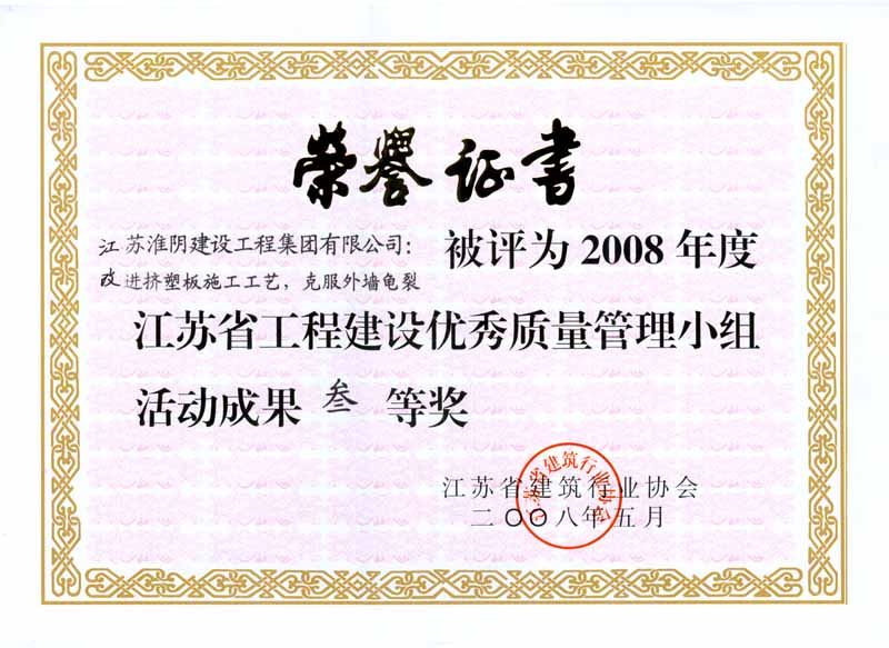 2008年省工程建设优秀质量管理小组活动成果叁等奖-改进挤塑板施工工艺、克服外墙龟裂