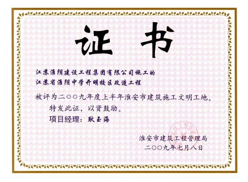 2009年省文明工地江苏淮阴中学开明校区改造-耿玉海