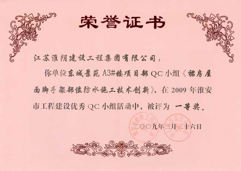 2009年市QC一等奖(东城景苑A3#楼项目部-裙房屋面脚手架部