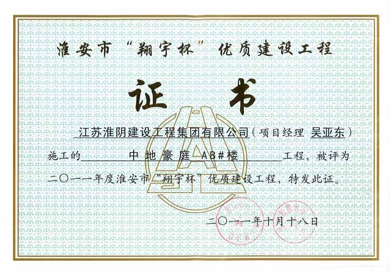 2011年市翔宇杯淮安涟水机场航站楼总承包-耿玉海