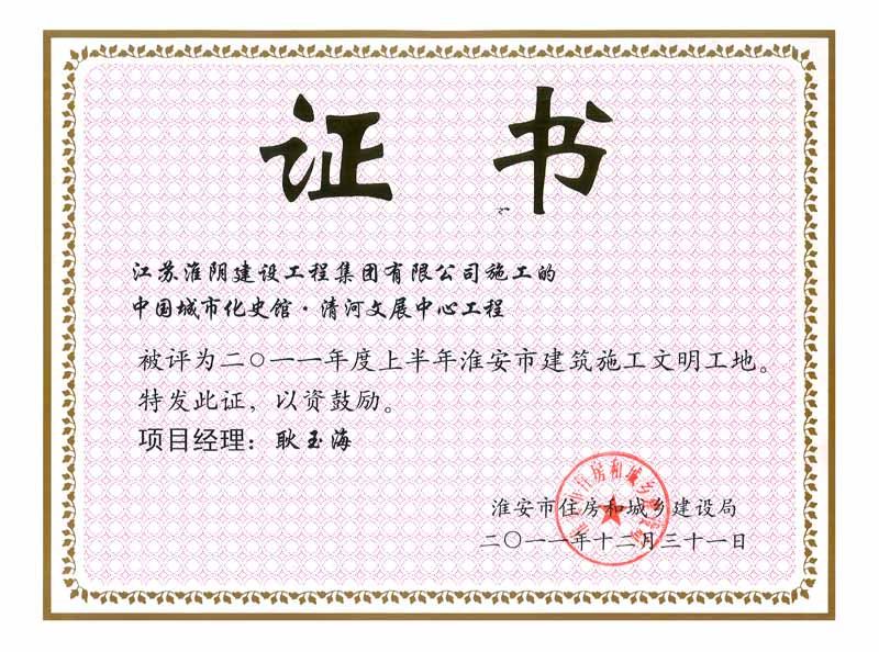 2011年文明工地淮阴工学院北京路小区1#学生宿舍楼接翻建